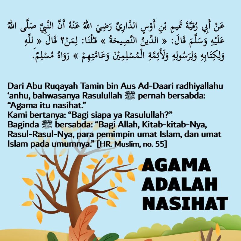 Dari Abu Ruqayah Tamin bin Aus Ad-Daari radhiyallahu ‘anhu, bahwasanya Rasulullah ﷺ pernah bersabda: “Agama itu nasihat.”