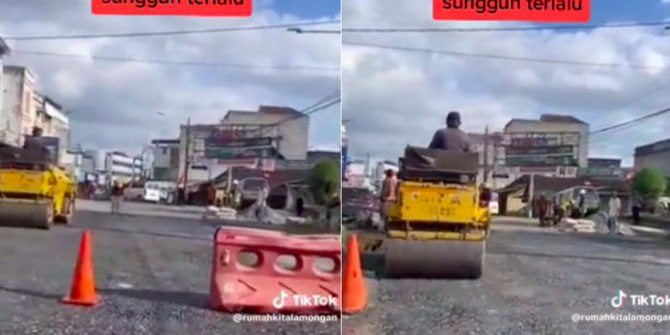 Sebuah video yang diunggah oleh akun TikTok @rumahkitalamongan memperlihatkan sejumlah alat berat yang tengah memperbaiki jalanan di Provinsi Lampung.