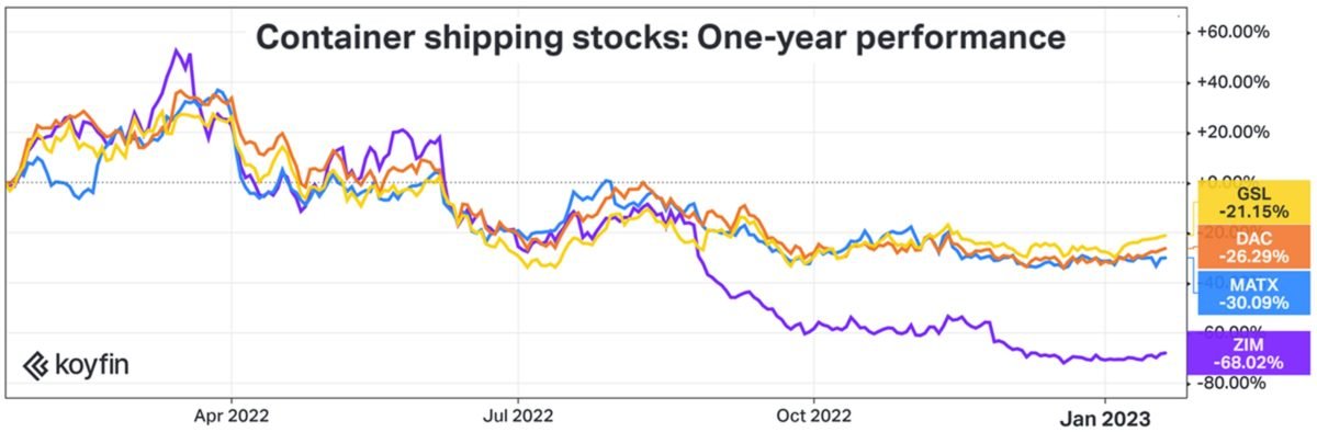 Sementara tarif turun, stok curah kering bergerak ke arah yang berlawanan karena para pemilik saham mengantisipasi kenaikan tarif. Star Bulk (NASDAQ: SBLK ) naik 14% tahun ini dan Genco Shipping & Trading (NYSE: GNK ) naik 12%.