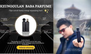 Mengutip dari pesan yang disampaikan oleh Owner Bapa Parfume Jimmy Nazwar Rao, manfaatkan keunggulan Baba Parfume Karena Baba Parfum secara legalitas perijinan jelas, bahan yang digunakan terbuat dari 80% bibit parfum murni yang berkualitas, jadi parfum ini bebas alkohol dan dapat tahan lama hingga 8-12 jam.