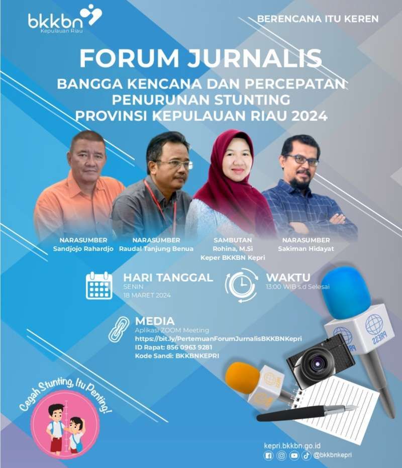 Sementara itu Ketua Tim Kerja Hubalila, AKIE dan Kehumasan BKKBN Dewita Sari menyampaikan dalam laporannya bahwa Forum Jurnalis Program Bangga Kencana dan Percepatan Penurunan Stunting Provinsi Kepulauan Riau diselenggarakan secara hybrid.