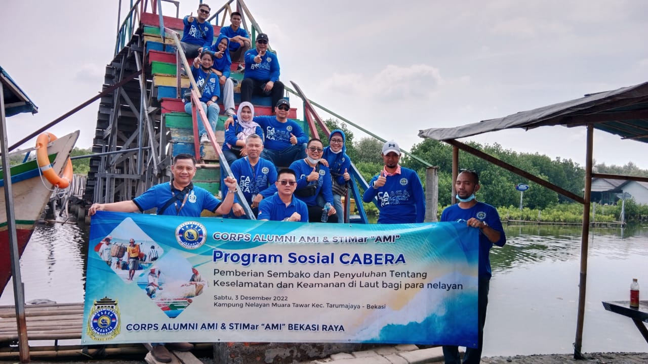 TIMESASIANews.com | Bekasi – Corps Alumni Akademi Maritim Indonesia – Sekolah Tinggi Ilmu Maritim (CAASA-AMI-STIMAR) Dewan Pimpinan Daerah Bekasi Raya mengadakan Bakti Sosial di Kampung Nelayan Muara Tawar, Kecamatan Tarumajaya, Bekasi. Sabtu (3/12/2022).