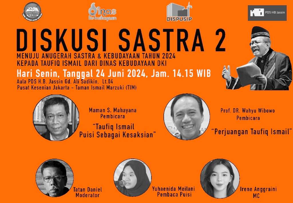 TimesAsiaNews.com | Jakarta – Diskusi Sastra ke-2 menuju anugerah sastra dan kebudayaan tahun 2024 kepada Penyair Taufiq Ismail, yang diusulkan sebagai Bapak Sastra Indonesia, akan berlangsung pada Senin 24 Juni 2024.