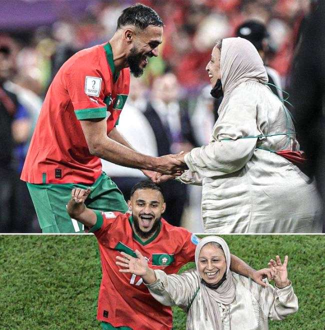 Terekam pemandangan yang indah saat sang bintang Maroko berusia 29 tahun tersebut membawa ibunya turun dari tribun ke lapangan setelah peluit panjang tanda berakhirnya permainan dibunyikan. Keduanya terekam sedang menari-nari di depan para penggemar Maroko.