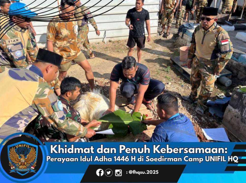 “Hari Raya Idul Adha bukan hanya menjadi momen ibadah, tetapi juga momentum untuk memperkuat tali persaudaraan, baik di antara sesama personel Satgas maupun dengan masyarakat lokal. Semangat berbagi dan pengorbanan yang menjadi esensi Idul Adha sangat relevan dengan tugas mulia kita sebagai pasukan perdamaian di bawah PBB. Saya bangga seluruh rangkaian kegiatan dapat berjalan tertib, aman, dan mencerminkan profesionalisme serta kedewasaan spiritual seluruh personel,” ungkap beliau.