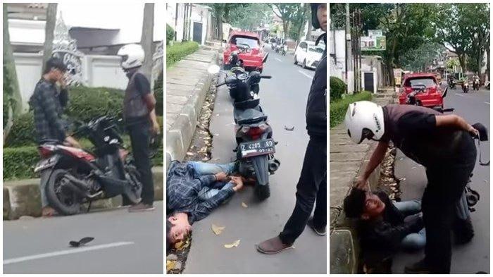 Korban diduga menyenggol motor pelaku di depan Kantor BPJS Kesehatan Kota Cimahi. Korban pun sudah meminta maaf, ia bahkan sampai menangis.