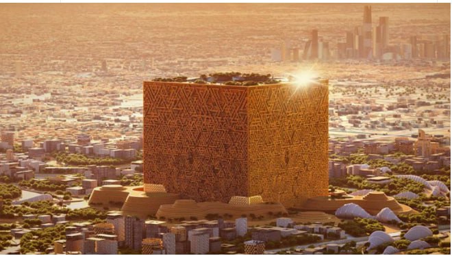 Sehingga Jantung dari proyek itu adalah Mukaab, sebuah kubus setinggi 400 meter (1.312 kaki), lebar 400 meter, dan panjang 400 meter yang cukup besar untuk memuat 20 bangunan Empire State, pencakar langit berlantai 102 di Midtown Manhattan, New York City.