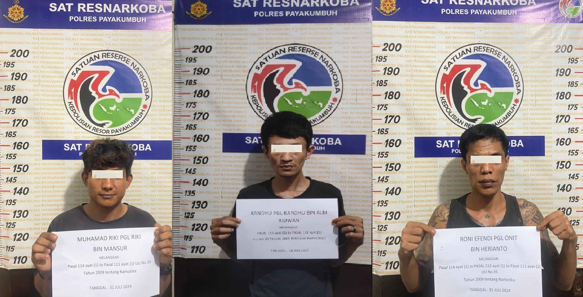Mewakili Kapolres AKBP Ricky Ricardo,S.I.K.,S.H.,M.H., Kasat Narkoba Polres Payakumbuh IPTU Aiga Putra menyebutkan tiga orang pria berinisial RN, RK dan RD menjadi tersangka dalam kasus kali ini.