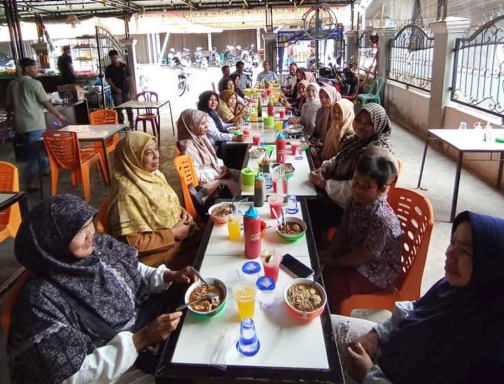 Setelah melaksanakan UAS, sejumlah guru beserta staf pengajar dan karyawan sekolah SMP Negeri 5 Seunagan membawa murid mereka di sebuah tempat makan di bilangan Kabupaten Nagan Raya.