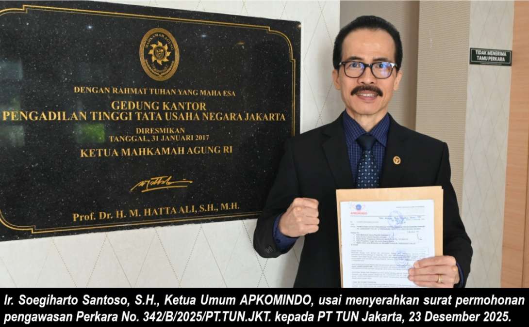 Permohonan pengawasan tersebut disampaikan melalui Surat Nomor 116/DPP-APKOMINDO/XII/2025 tertanggal 22 Desember 2025, yang ditujukan kepada Ketua Mahkamah Agung Republik Indonesia, Ketua Komisi Yudisial Republik Indonesia, dan Kepala Badan Pengawasan Mahkamah Agung Republik Indonesia, serta kepada Ketua Pengadilan Tinggi Tata Usaha Negara Jakarta dan Majelis Hakim yang memeriksa perkara a quo. Surat dimaksud telah diregistrasi secara resmi oleh Komisi Yudisial Republik Indonesia dengan Nomor 1059/KY/XII/2025/LM/L pada 23 Desember 2025.