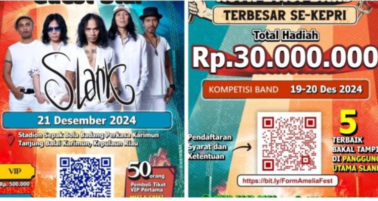 Grup Band Indonesia Papan Atas Slank Bakal Manggung di Karimun, Segini HTM! Kepulauan Riau, Musik & Hiburan|December 13, 2024December 13, 2024by Redaksi TimesAsiaNews.com | Karimun, Kepulauan Riau – Grup band papan atas asal Indonesia,