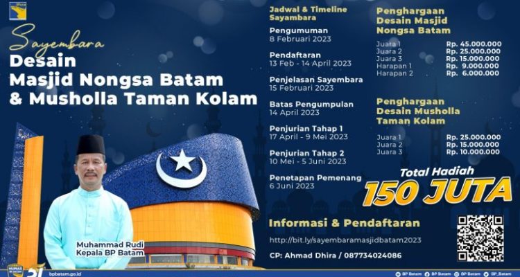 Sayembara BP Batam Desain terbaik Masjid-Mushalla Nongsa dan Taman Kolam Sekupang tersedia Hadiah Total 150 Jt Batam|February 17, 2023February 18, 2023by Castilo TimesAsiaNews.com | Batam – Kabar gembira buat warga Nongsa khususnya dan Batam