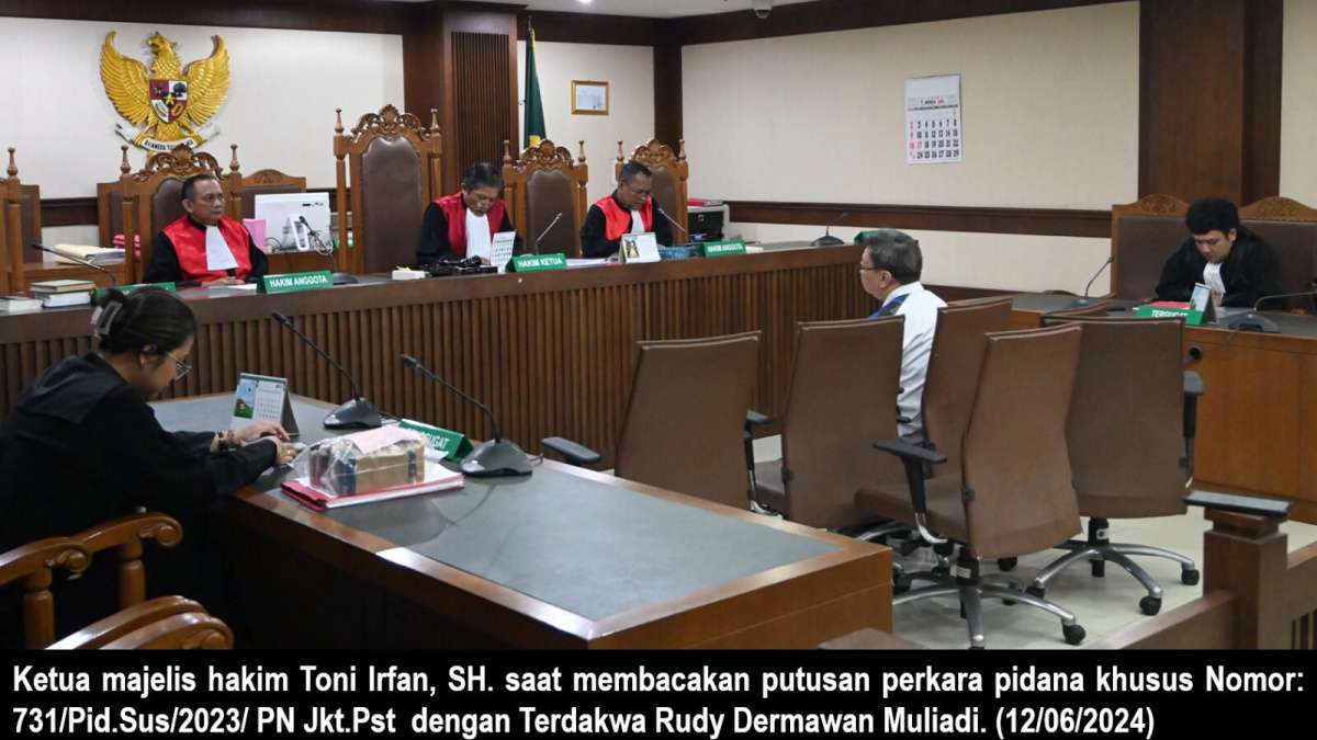 TimesAsiaNews.com | Jakarta – Majelis Hakim Pengadilan Negeri Jakarta Pusat yang terdiri dari Toni Irfan, SH., bersama hakim anggota Teguh Santoso, SH., dan I Gusti Ngurah Partha Bhargawa, SH., akhirnya menjatuhkan hukuman pidana penjara selama 4 bulan dan denda 20 Juta Rupiah, subsider 1 bulan penjara terhadap Rudy Dermawan Muliadi, pada Rabu (12/06/2024).