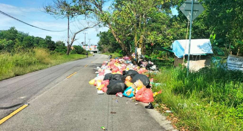 Tampak sampah menumpuk bahkan berserakan hingga ke bahu jalan utama. Seperti yang terlihat di pinggir jalan menuju pelabuhan Roro Paret Rempak Sungai Raya. Tumpukan sampah tersebut dapat menghalangi pengguna jalan, baik kenderaan maupun pejalan kaki, belum lagi aroma sampah yang lama tidak diangkut ini sangat mengganggu kesehatan warga sekitarnya.