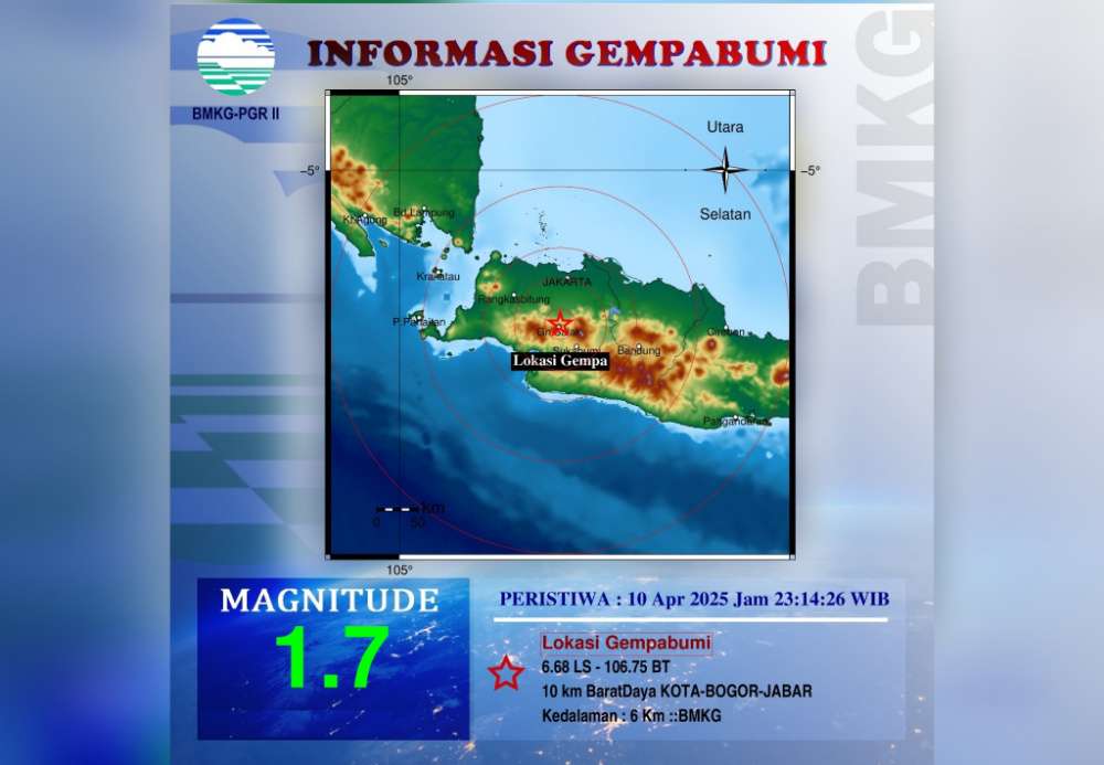 TimesAsiaNews.com | Bogor, Jawa Barat – Warga Kota Bogor, masih merasakan gempa bumi pada Kamis (10/4) malam. Kepala BBMKG Wilayah II Tangerang, Hartarto, St, MM., mengatakan, dari analisa BMKG di Bogor menunjukkan bahwa gempa bumi ini berkekuatan M=4,1.